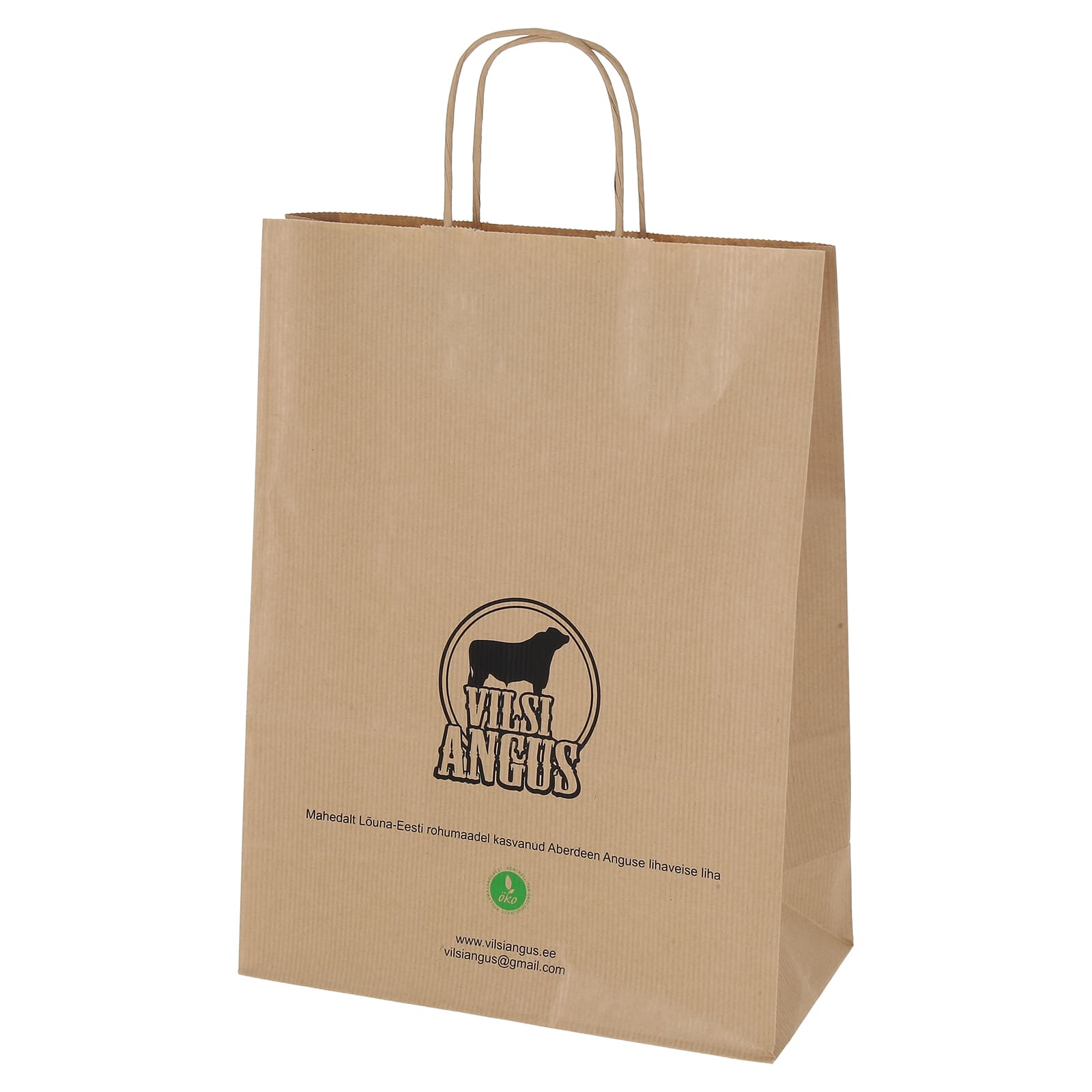Kraftpaberist paberkott pabernöörsangadega sobib hästi kasutamiseks jaekauplustes, kohvikutes ja restoranides. Vastupidav materjal ja tugev sang tagavad koti mugava kasutuse nii kaasavõtuks kui ka kingipakendiks.